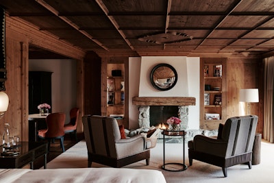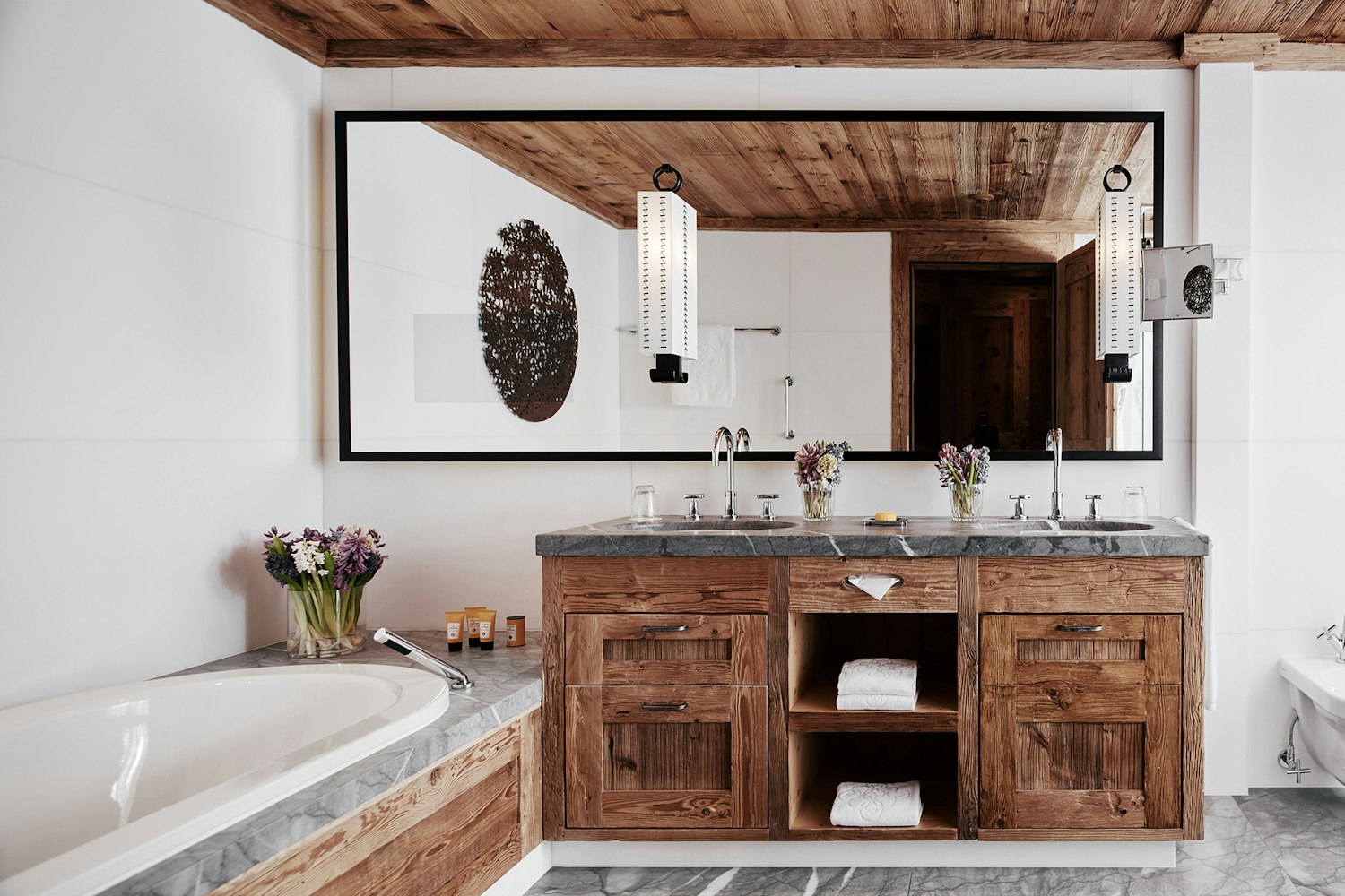 Geräumiges Schlafzimmer mit grossem Ankleideraum und repräsentativem Kamin. Loungebereich mit handgefertigten Accessoires aus der Region, antikem Bücherschrank und Bibliothek. Grösse der Suite: 77 m². Die Ausstattung, Anlegung und Einrichtung der Zimmer kann von Zimmer zu Zimmer der gleichen Kategorie unterschiedlich sein.